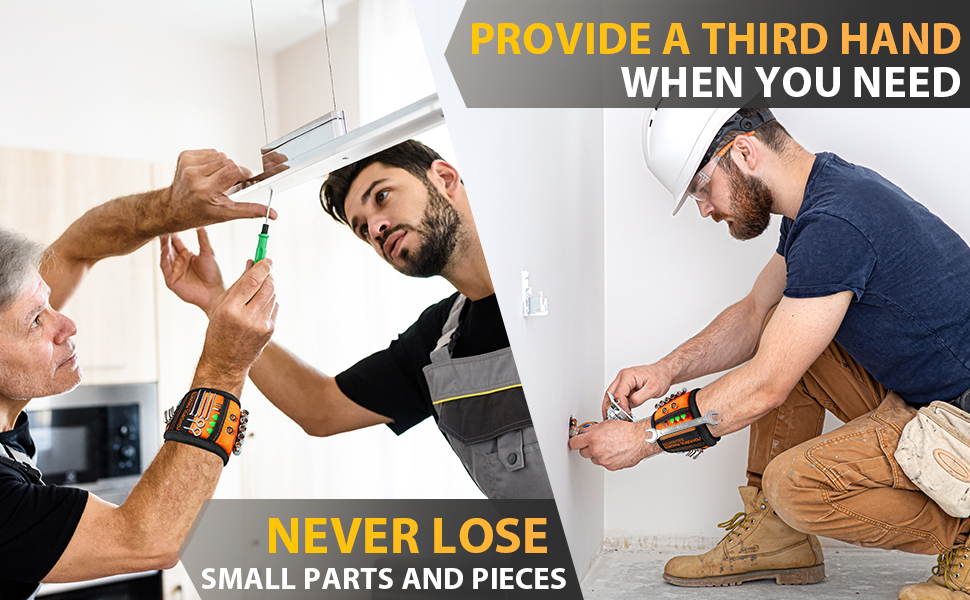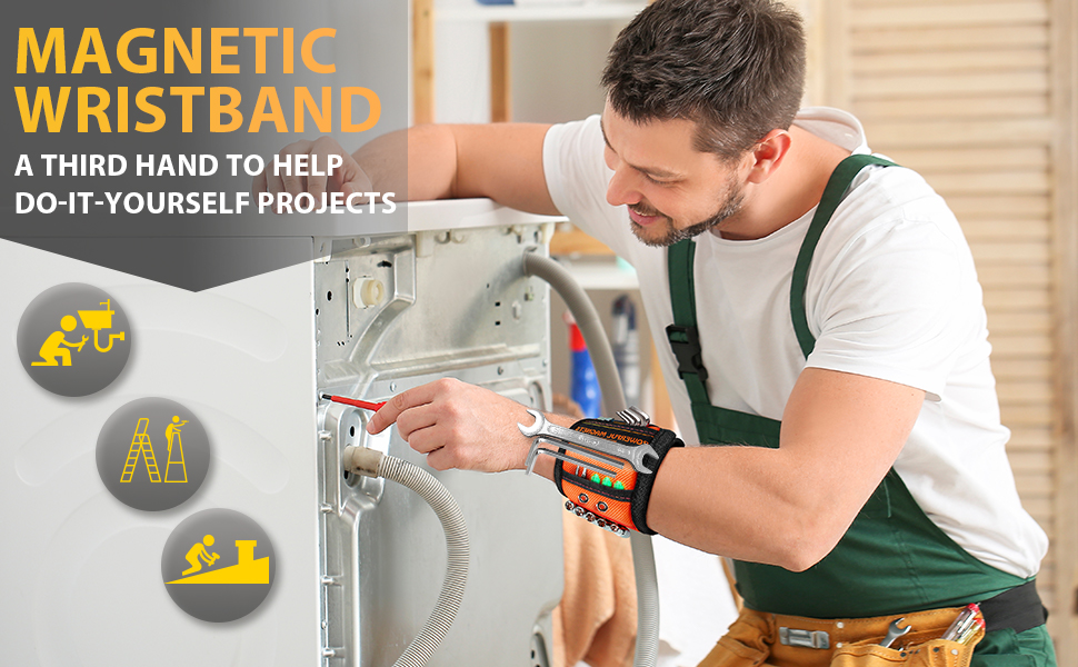 The SOOFUN Magnetic Wristband is a professional-grade tool accessory featuring 15 powerful NdFeB magnets and two pockets for non-metal items, crafted from durable yet breathable ballistic polyester. Designed for men and women who demand efficiency and comfort, it offers an adjustable fit and a vibrant orange-black design for quick tool access. Perfect for electricians, carpenters, and DIY enthusiasts, this wristband streamlines your workflow by keeping screws, nails, and small tools securely at hand.